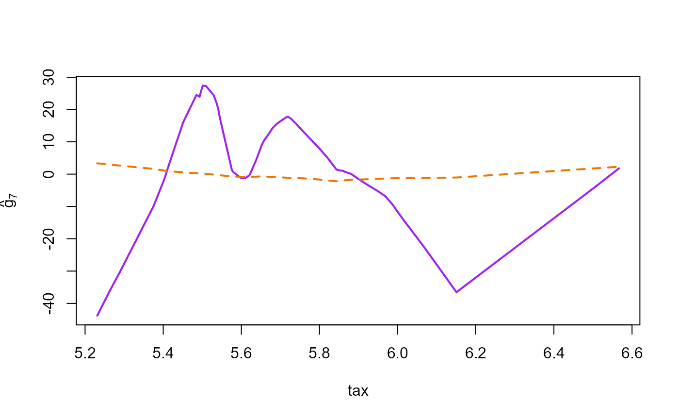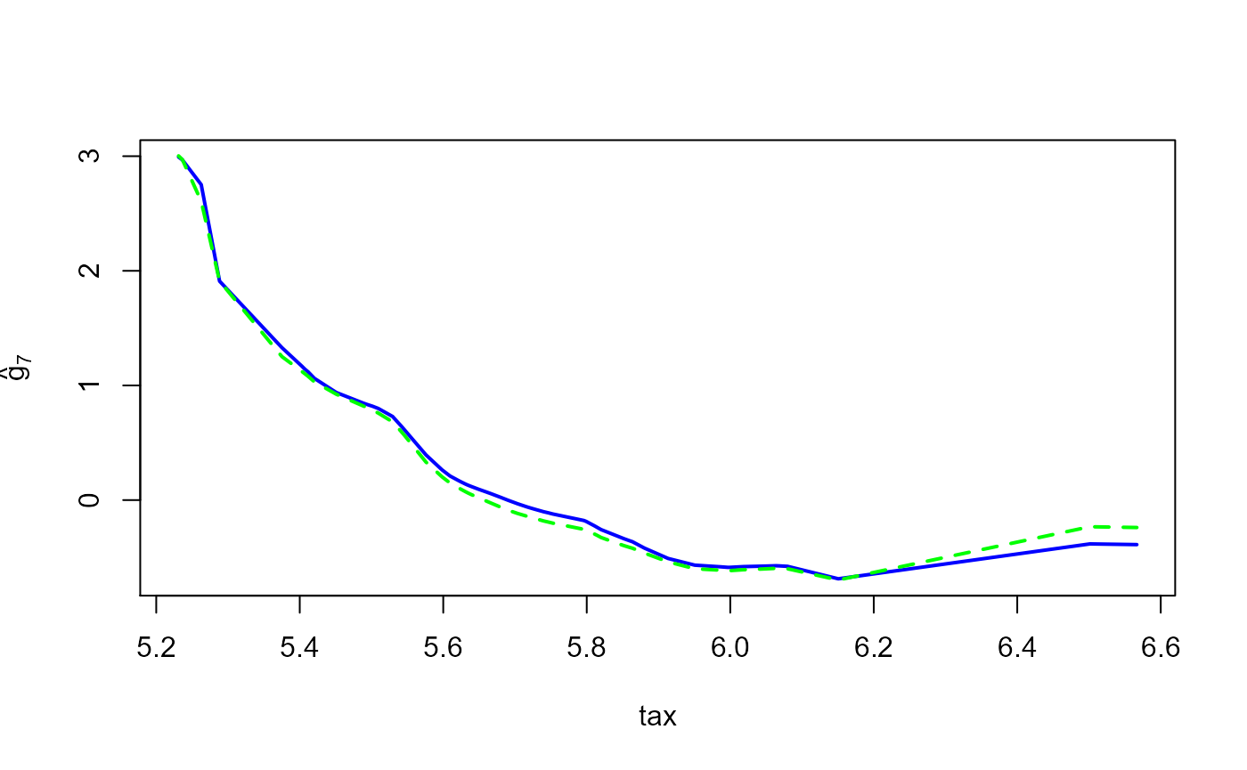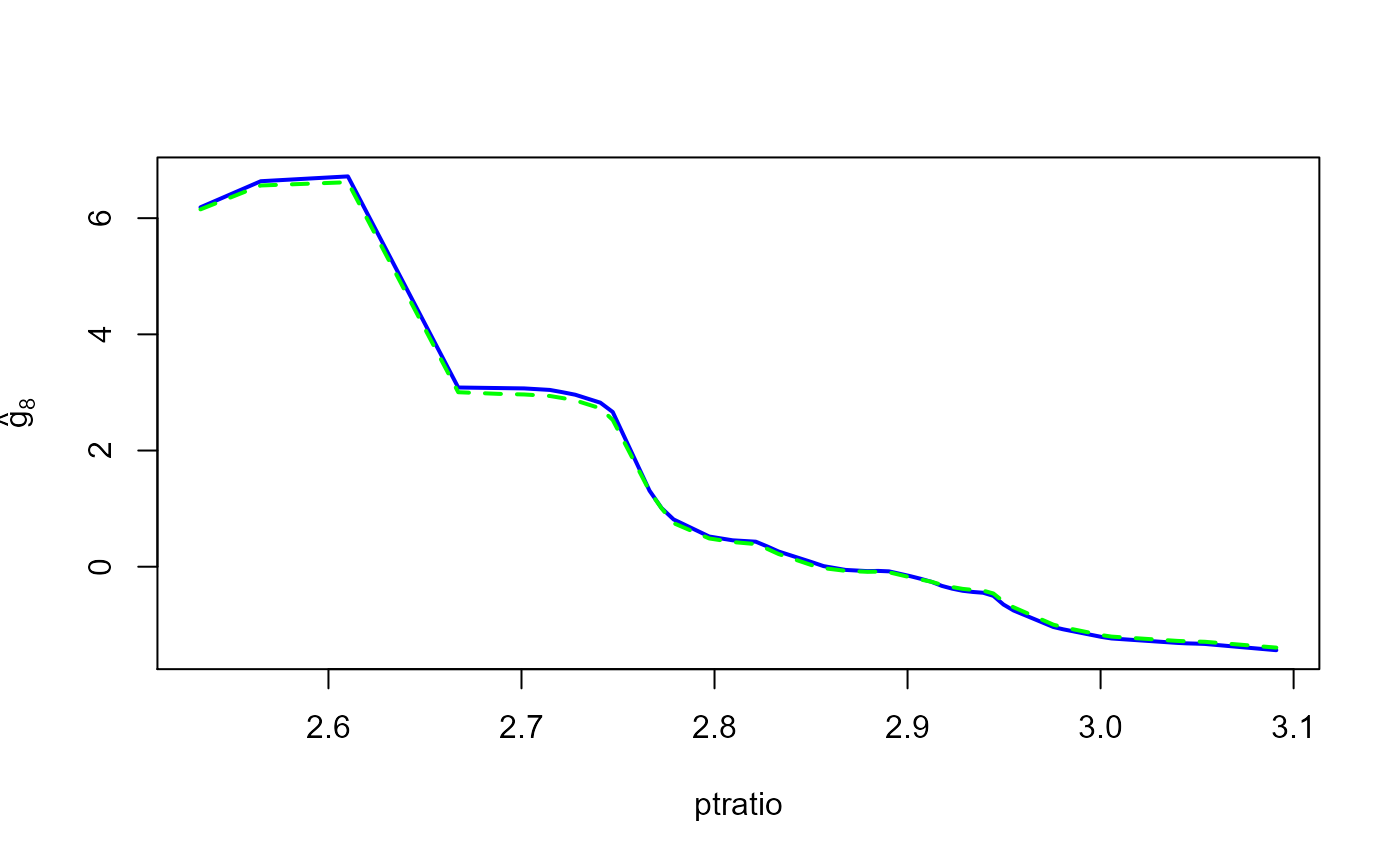 lines(dd2[oo,j], robust.fit$g.matrix[oo,j], lwd=2, col='green', lty=2)
