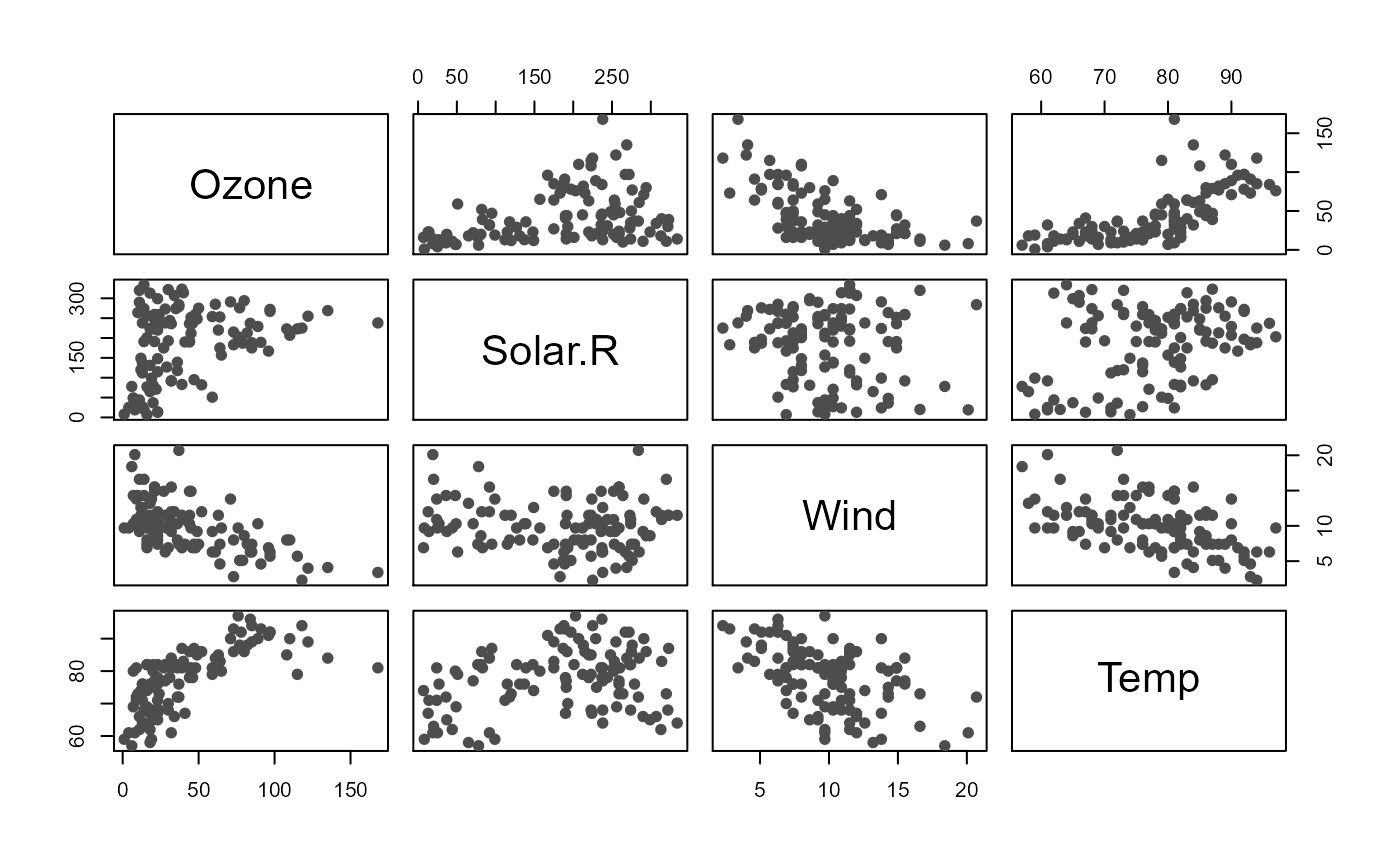 dd <- dd[complete.cases(dd), c('Ozone', 'Solar.R', 'Wind', 'Temp')]
